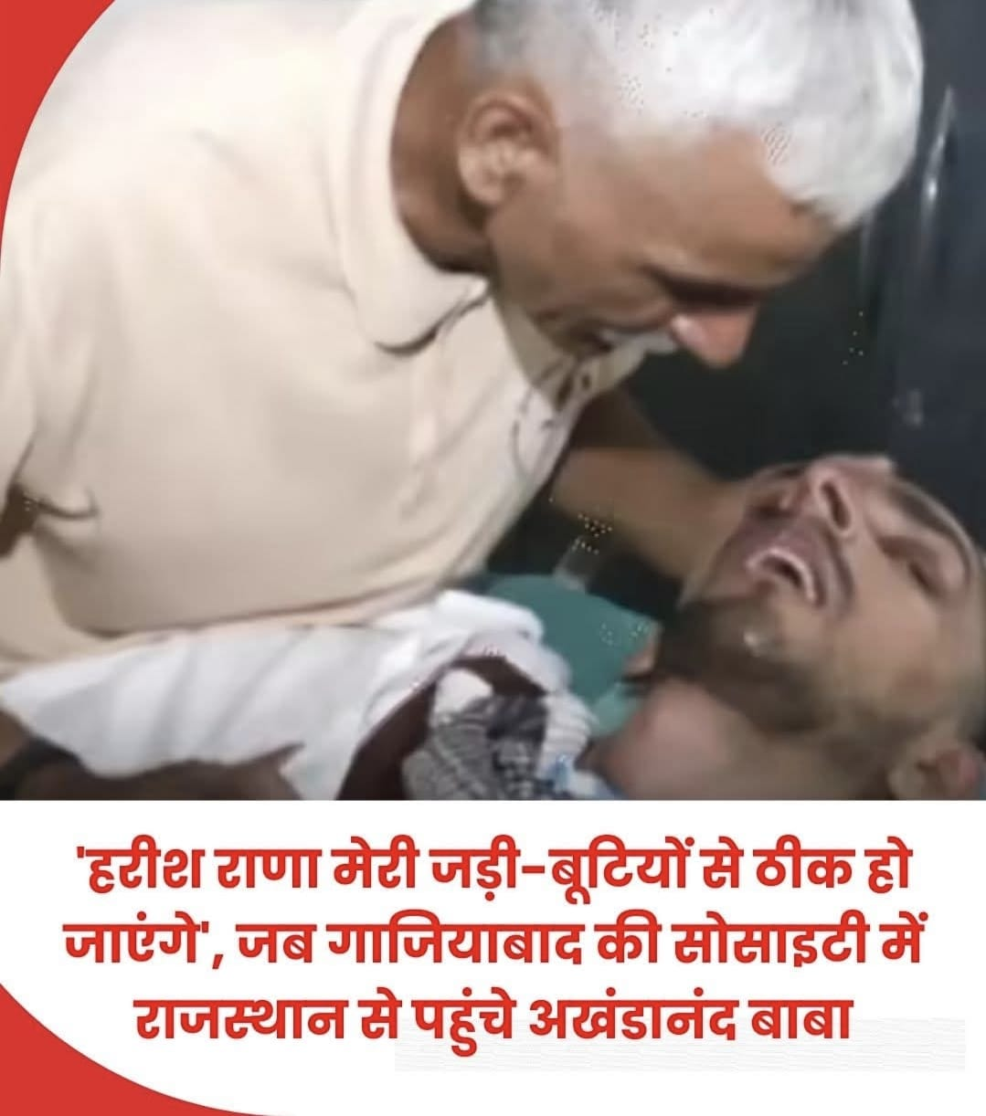 उत्‍तर प्रदेश के गाजियाबाद में रहने वाले 31 साल के हरीश राणा की सेहत पर आज पूरे देश की नजर है। वह पिछले 13 साल से कोमा में हैं और लाइफ सपोर्ट सिस्‍टम पर हैं। सुप्रीम कोर्ट ने उनके माता-पिता की अपील पर हाल ही में इच्‍छामृत्‍यु की अनुमति दी है। इस बीच, राजस्‍थान के भीलवाड़ा में रहने वाले अखंडानंद बाबा गाजियाबाद पहुंचे। 62 वर्षीय बाबा का दावा है कि उनके पास देसी जड़ी-बूटियों से बनी दवाइयां हैं। इनसे हरीश राणा को नई जिंदगी मिल सकती है। बाबा का यह भी कहना है कि इन दवाओं की जांच एम्‍स के डॉक्‍टरों से कराई जा सकती है। इससे नसें और अंग फिर से काम करना शुरू कर देंगे।