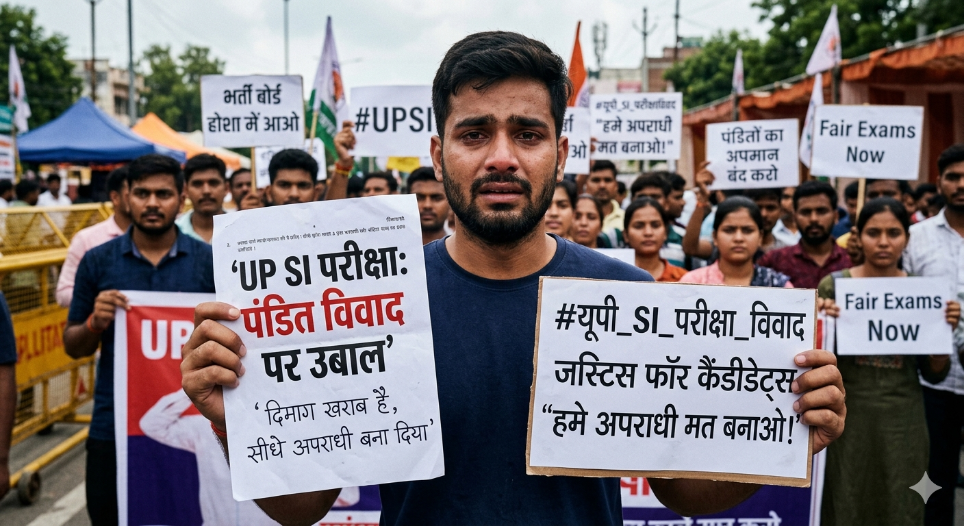 लखनऊ/उत्तर प्रदेश: उत्तर प्रदेश पुलिस उप-निरीक्षक (UP SI) भर्ती परीक्षा एक बार फिर विवादों के घेरे में है। इस बार विवाद किसी पेपर लीक को लेकर नहीं, बल्कि परीक्षा पत्र में पूछे गए एक ‘विवादास्पद’ सवाल को लेकर है। सोशल मीडिया पर ‘पंडित विवाद’ के नाम से यह मुद्दा तेजी से वायरल हो रहा है, जिसने अभ्यर्थियों और एक विशेष समुदाय के बीच भारी आक्रोश पैदा कर दिया है।